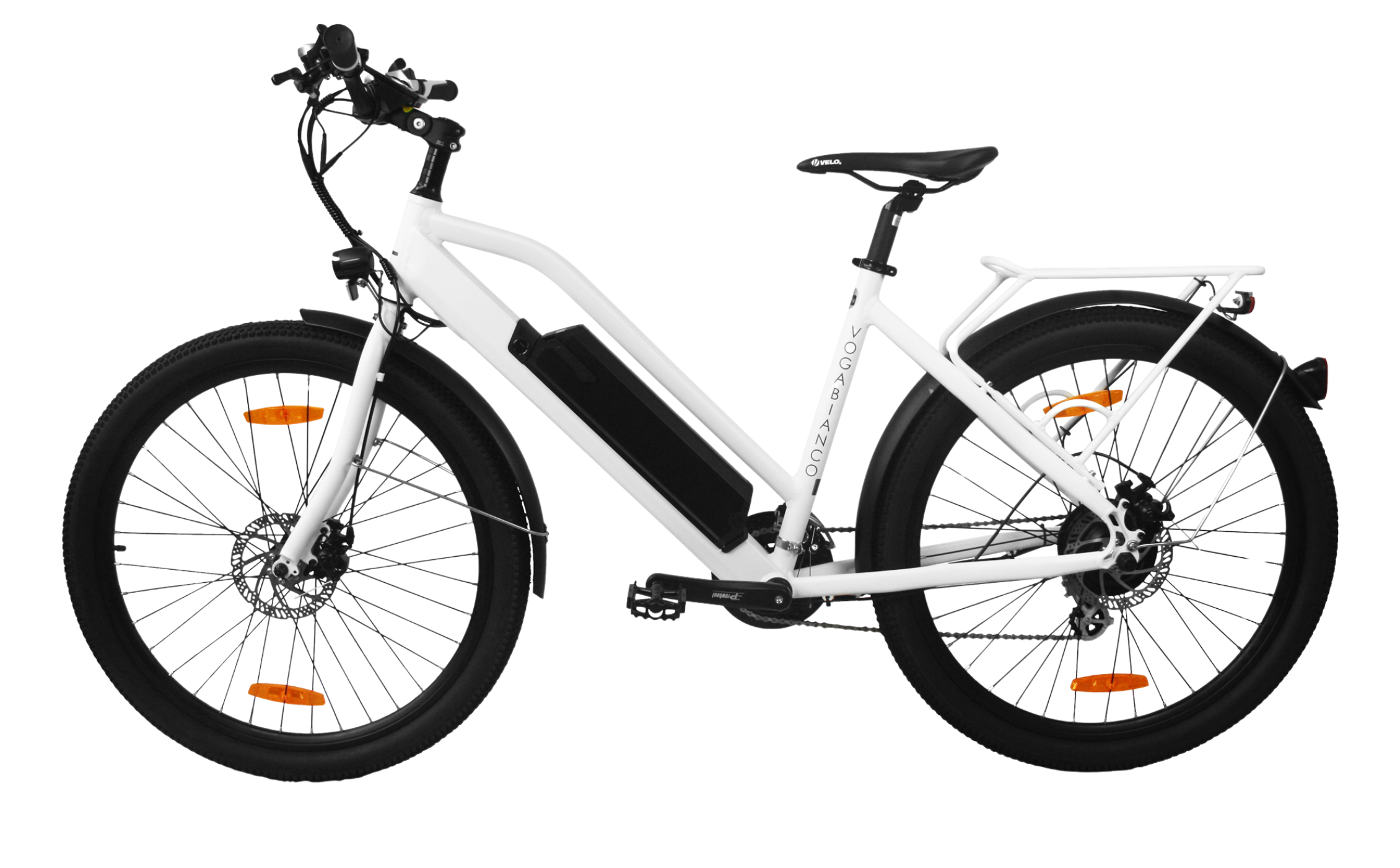 The Voga Bianco features a semi-integrated battery with an impressive range of up to 100 km. The easily accessible charging port allows for convenient charging without removing the battery. Innovative technology ensures maximum efficiency and comfort – simply plug in and charge while the battery remains securely in the bike.