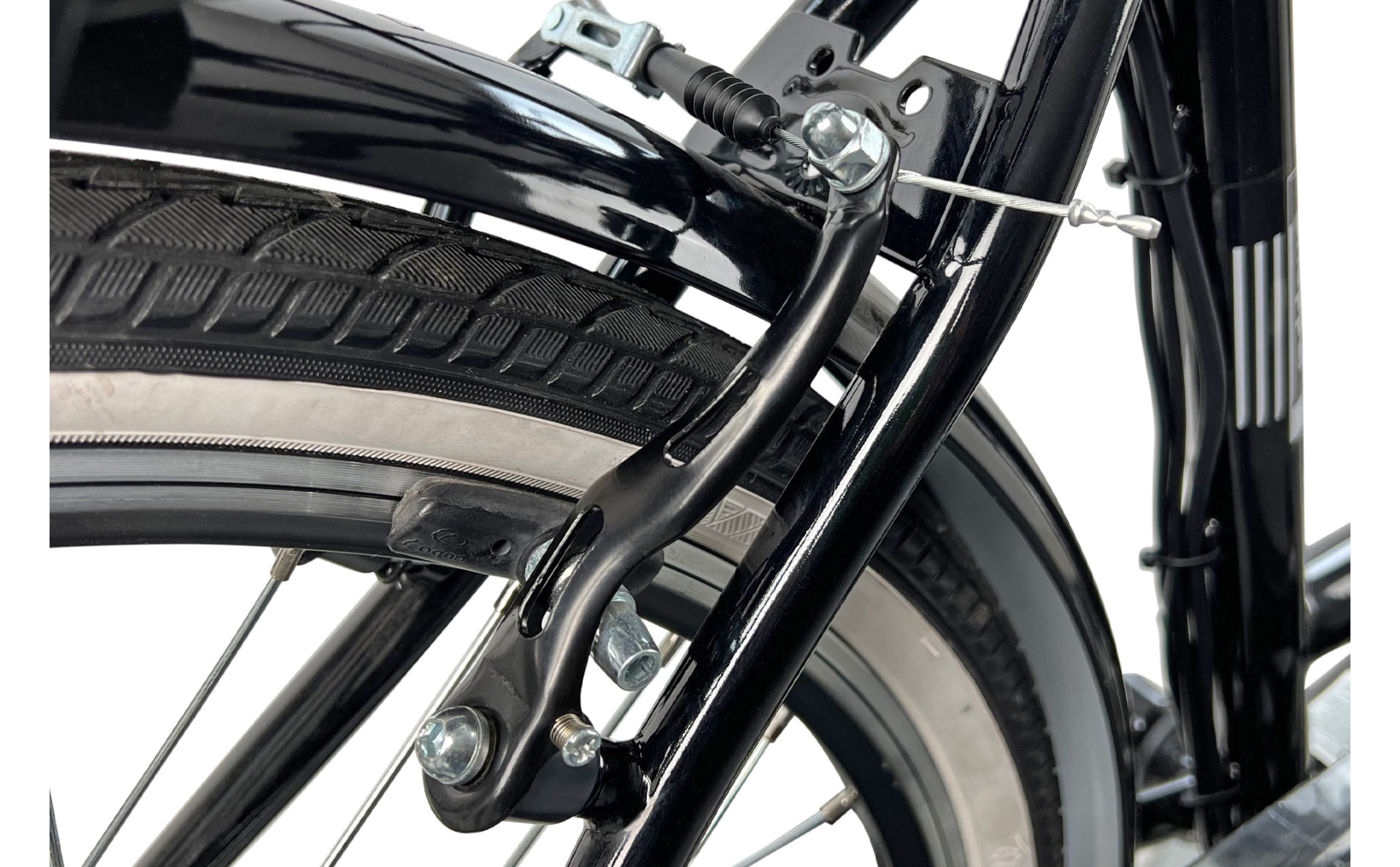 Sicherheit ist bei diesem City E-Bike garantiert: Die zuverlässigen Felgenbremsen vorne und hinten sorgen für eine schnelle und sichere Bremswirkung, egal bei welchem Wetter.