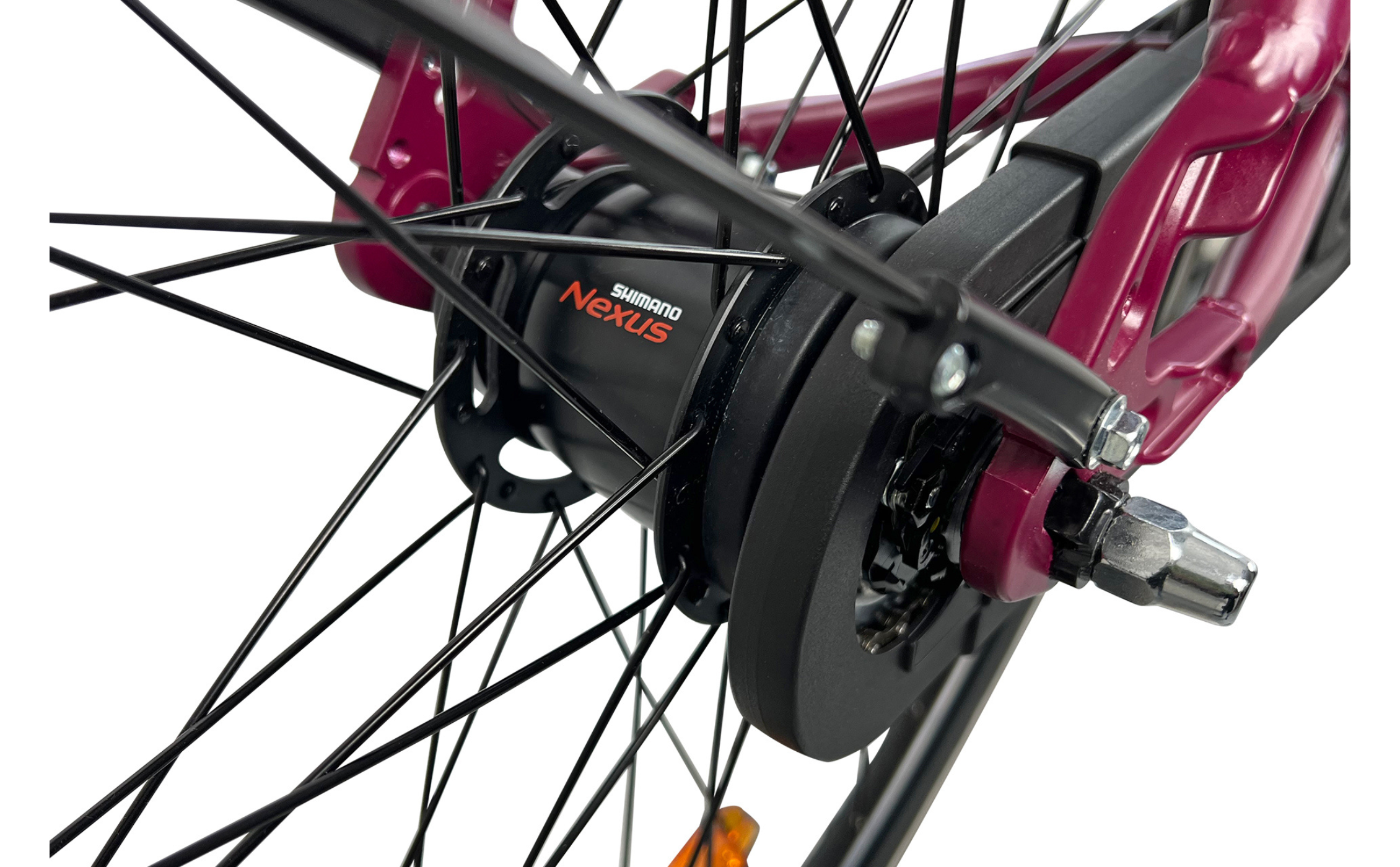 Die Shimano Nexus 7-Gang-Nabenschaltung bietet wartungsarmen, zuverlässigen Antrieb, leichtes Schalten im Stand, geschützte Technik, hohe Langlebigkeit, sanfte Gangwechsel und zusätzliche Sicherheit durch die integrierte Rücktrittbremse. Ideal für Stadt- und längere Touren