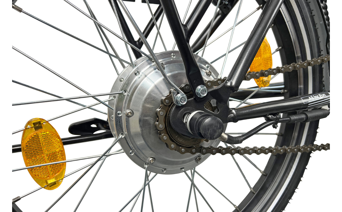 Der leistungsstarke Hinterradmotor sorgt für eine optimale Kraftübertragung und ein müheloses Fahrgefühl.