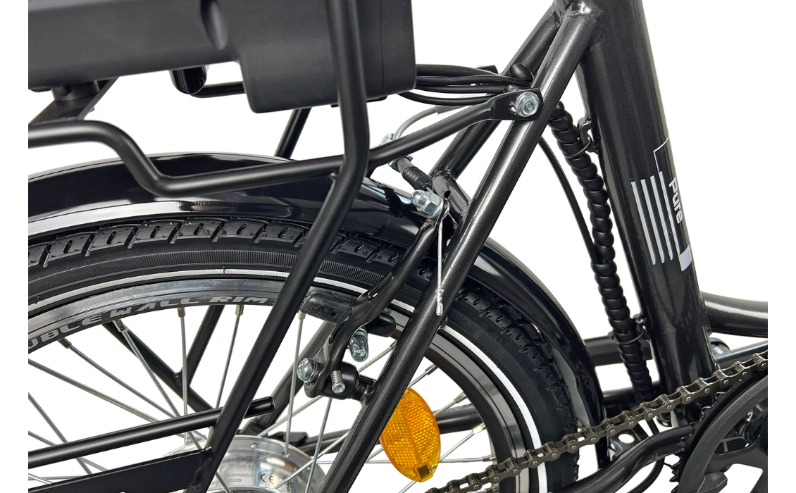 Das kompakte 20″ Faltrad Pure mit Hinterradmotor ist der ideale Begleiter für Pendler und Stadtfahrer. Mit seiner praktischen Faltmechanik lässt es sich schnell und einfach zusammenklappen, sodass es problemlos in öffentlichen Verkehrsmitteln, im Auto oder zu Hause verstaut werden kann.