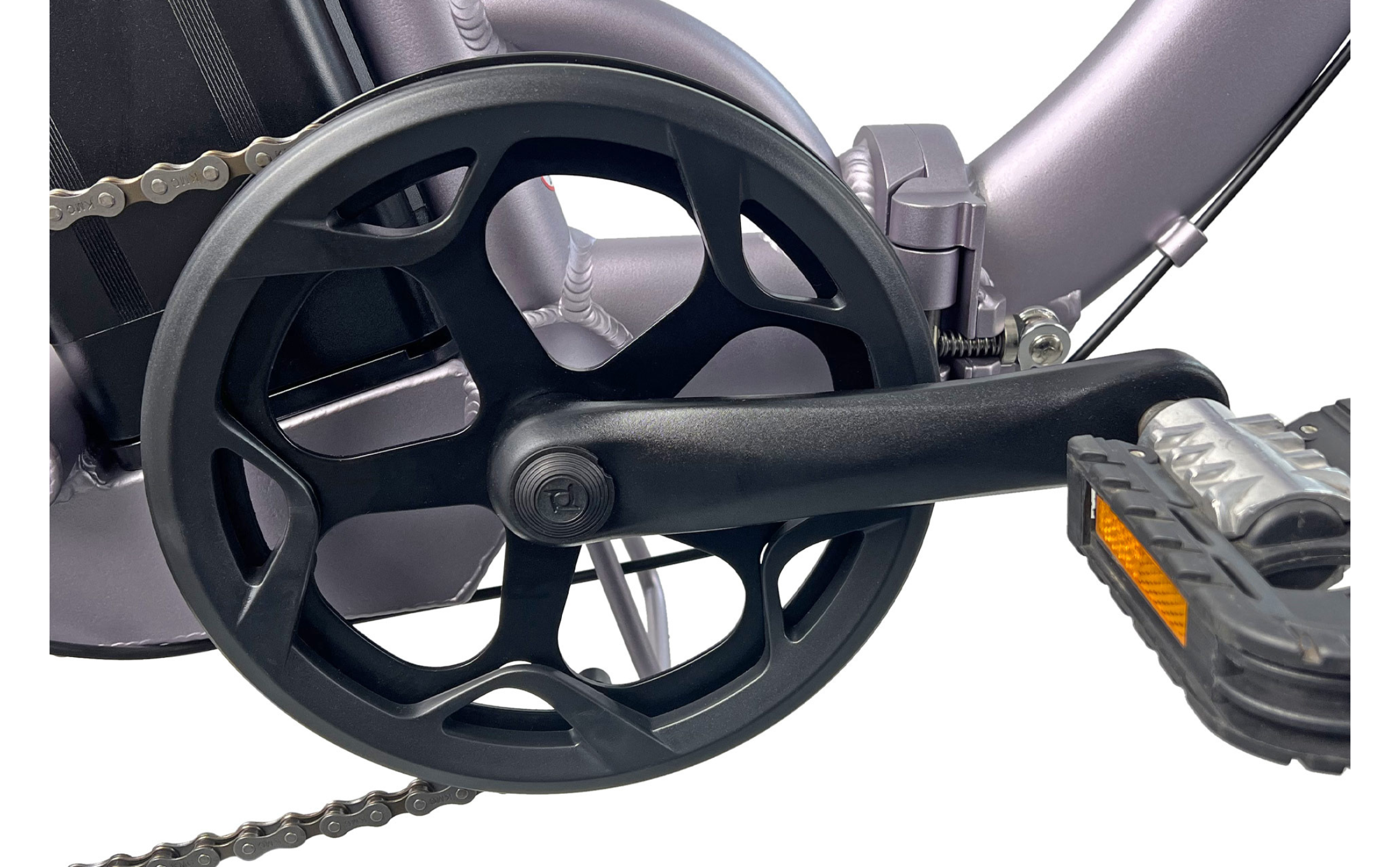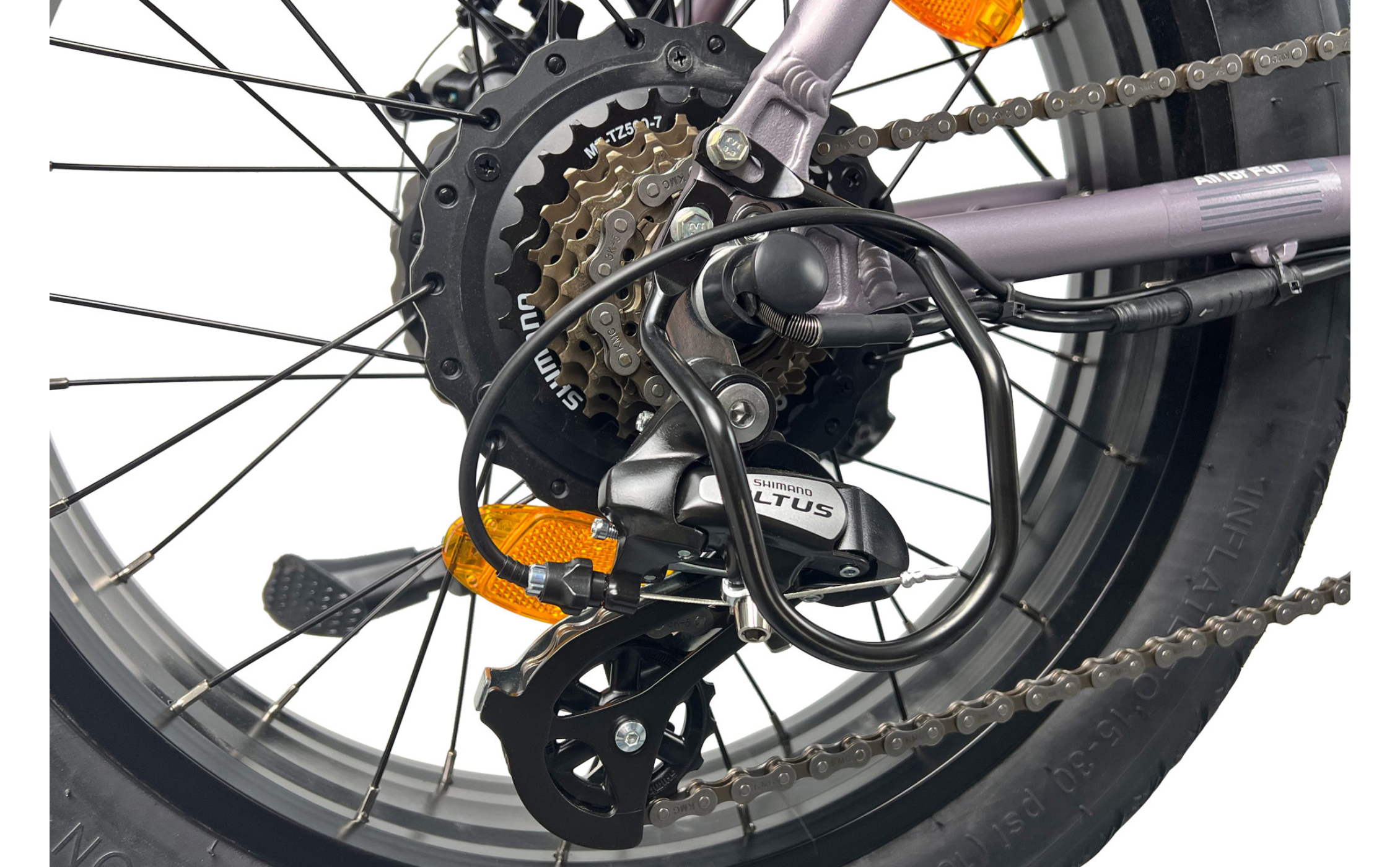 Der leistungsstarke 36 V Hinterradmotor sorgt für eine optimale Kraftübertragung und ein müheloses Fahrgefühl. Die 7-Gang-Kettenschaltung hinten ermöglicht geschmeidiges Schalten, effizientes Treten, optimale Kraftübertragung, einfache Handhabung und Anpassung an Steigungen sowie flachem Gelände.