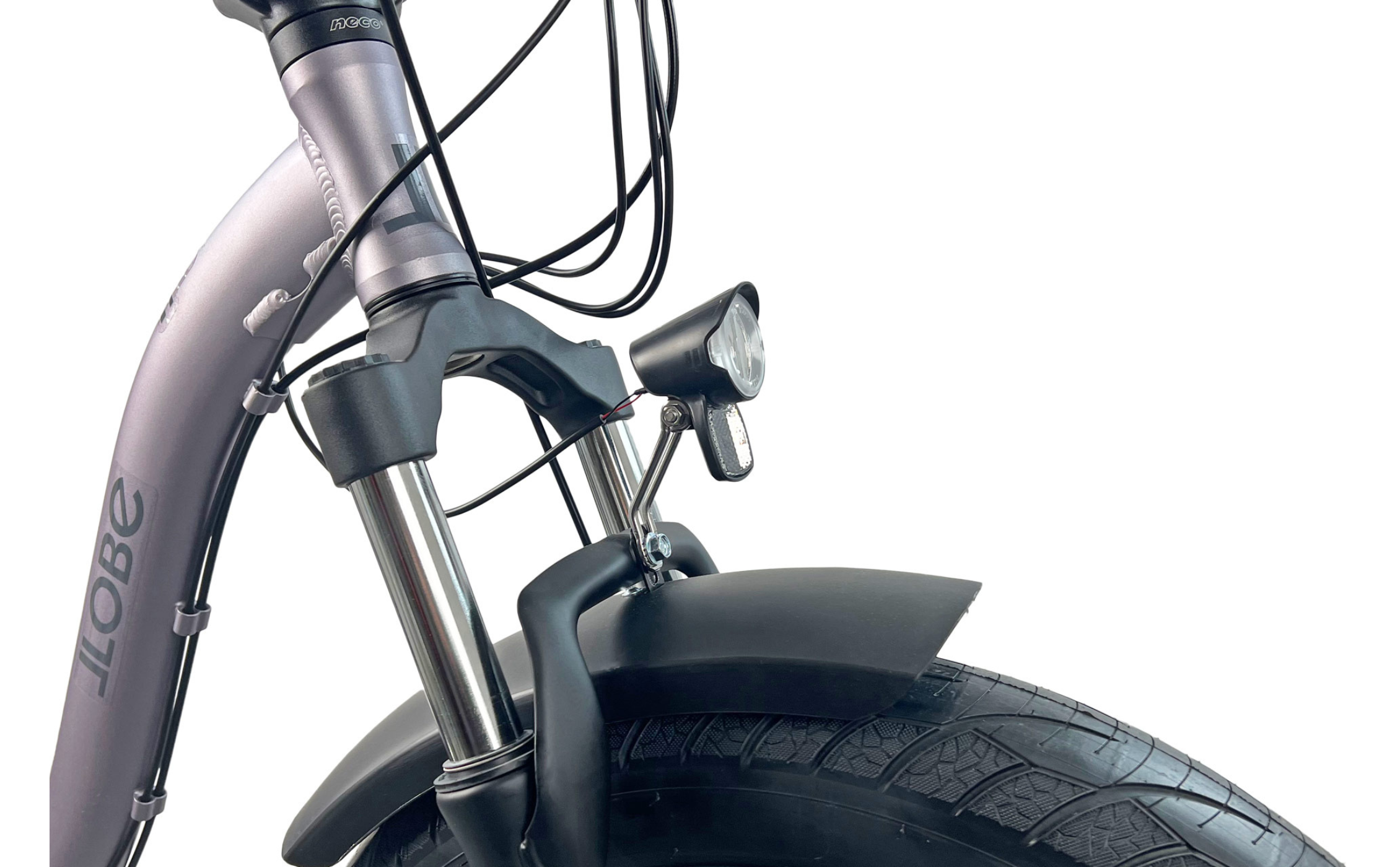 Die gefederte Vordergabel sorgt für hohen Fahrkomfort und ermöglicht eine angenehme Fahrt, selbst auf unebenem Gelände und holprigen Strecken.
