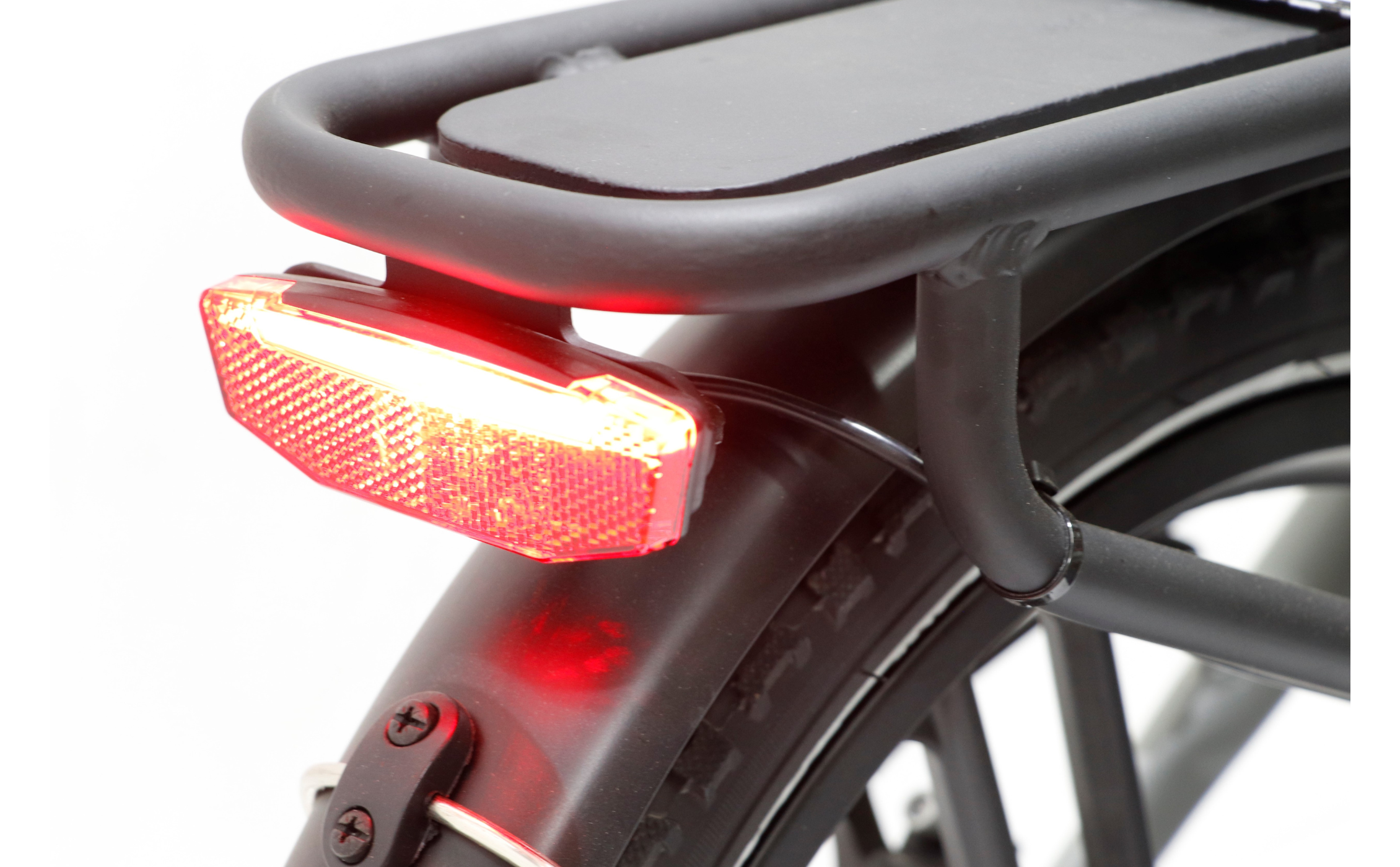 Der leistungsstarke 36 V Hinterradmotor sorgt für eine optimale Kraftübertragung und ein müheloses Fahrgefühl. Die 7-Gang-Kettenschaltung hinten ermöglicht geschmeidiges Schalten, effizientes Treten, optimale Kraftübertragung, einfache Handhabung und Anpassung an Steigungen sowie flachem Gelände.